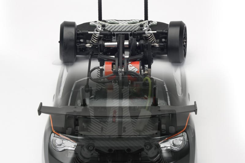 Front-mid engine design with the center of gravity positioned behind the front axle, delivering more stable and agile drifting.